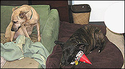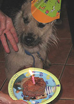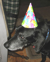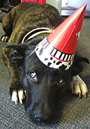 Buddy, a regular DayCare visitor spent his 14th Birthday with us -- party guests: George, Martha, Gwen, Biff and Buddy's Dad.