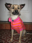 Here he is wearing his new Polo Shirt - a "hand-me-down" from our dear departed Max. They look so much alike, we often call him Minnie Max