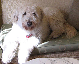 Lo and behold along comes this Lady who was being courted by other dogs ---Tucson and Lucas among the many. But she liked me the best because I was "un-adoptable". So one day she couldn't find me at the Shelter --- I had been groomed ---- instead of looking like a dirty, muddy, unkempt stuffed animal --- I looked like a lamb. And she called me "Lambchop" after the Shari Lewis hand puppet. P.S. She was on that show once a long time ago.