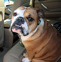 Millie, the English Bulldog arrives on the Queen Mary 2 with her "Mom" from London, moving back home to New Jersey.